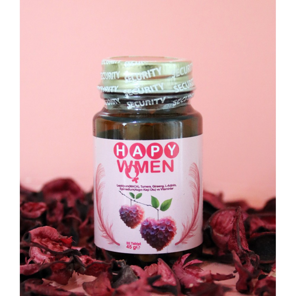 Hapy Women Lepidyum(MACA),Turnera,Ginseng,L-Arjinin, Epimedyum(Azgın Keçi Otu) Vitamin Takviye Gıda
